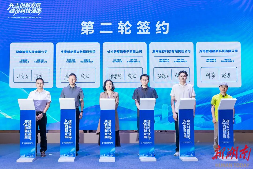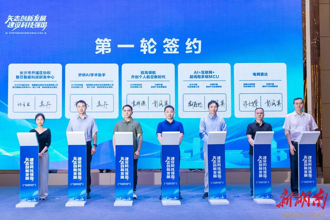 活动现场,协和智芯智能科技研发中心、驭风航空、宇泰新能源大数据研究院、研复微电子等10个新落地科技创新项目完成签约,涵盖人工智能、航空航天、智能制造等领域。此次签约项目落地将加速新兴产业和未来产业的布局,进一步完善区域产业链条,为开福区经济高质量发展注入新动能。